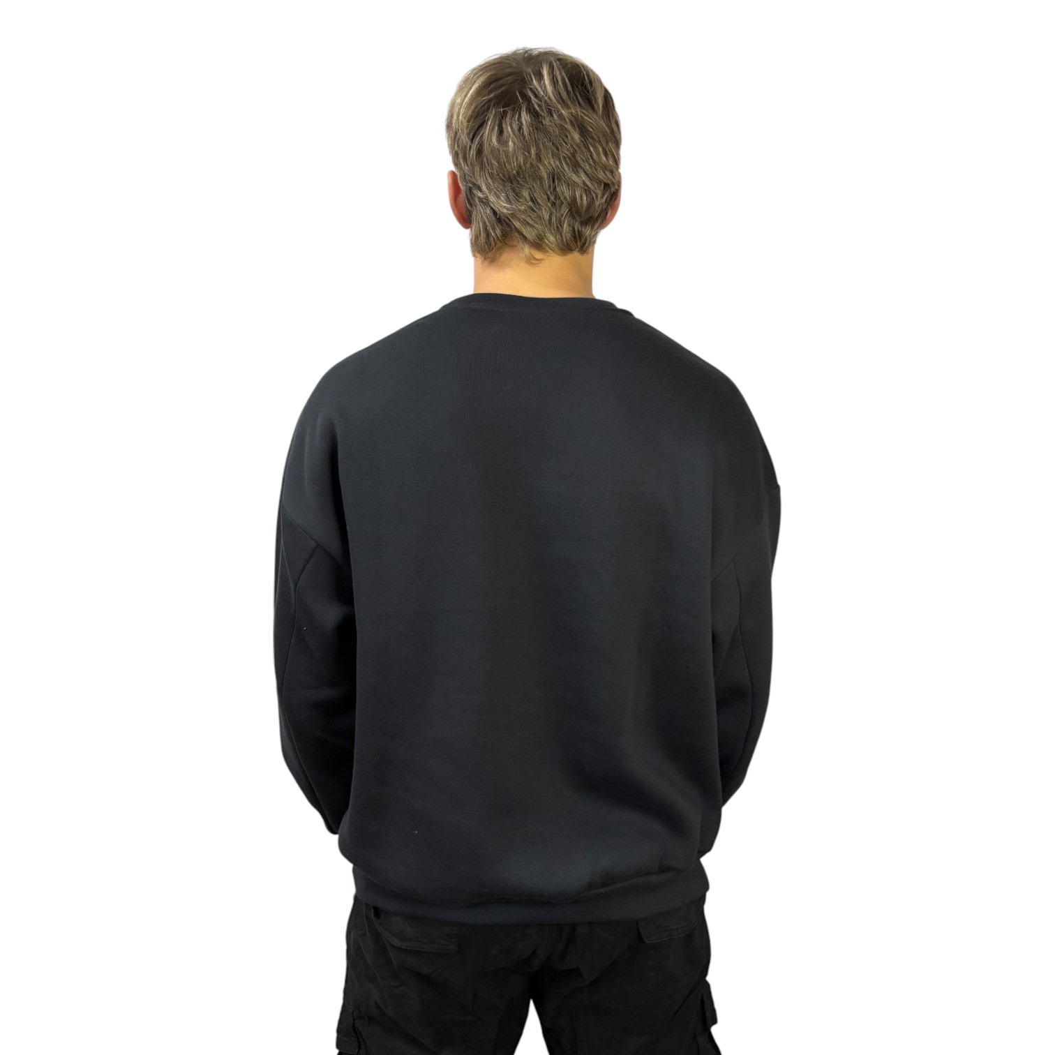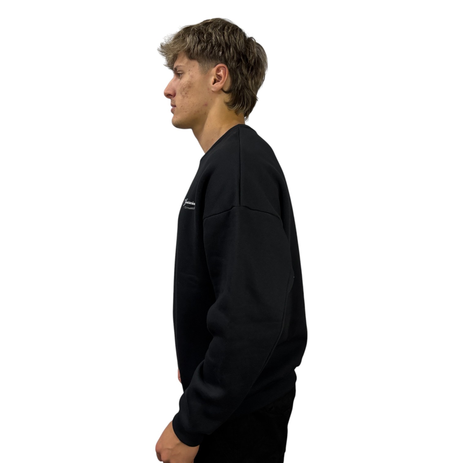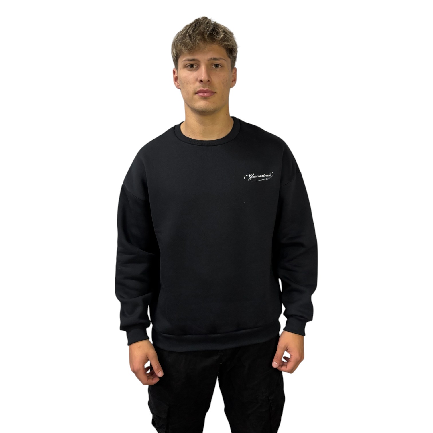 Buzo cuello redondo unisex frisado con estampa en parte anterior.