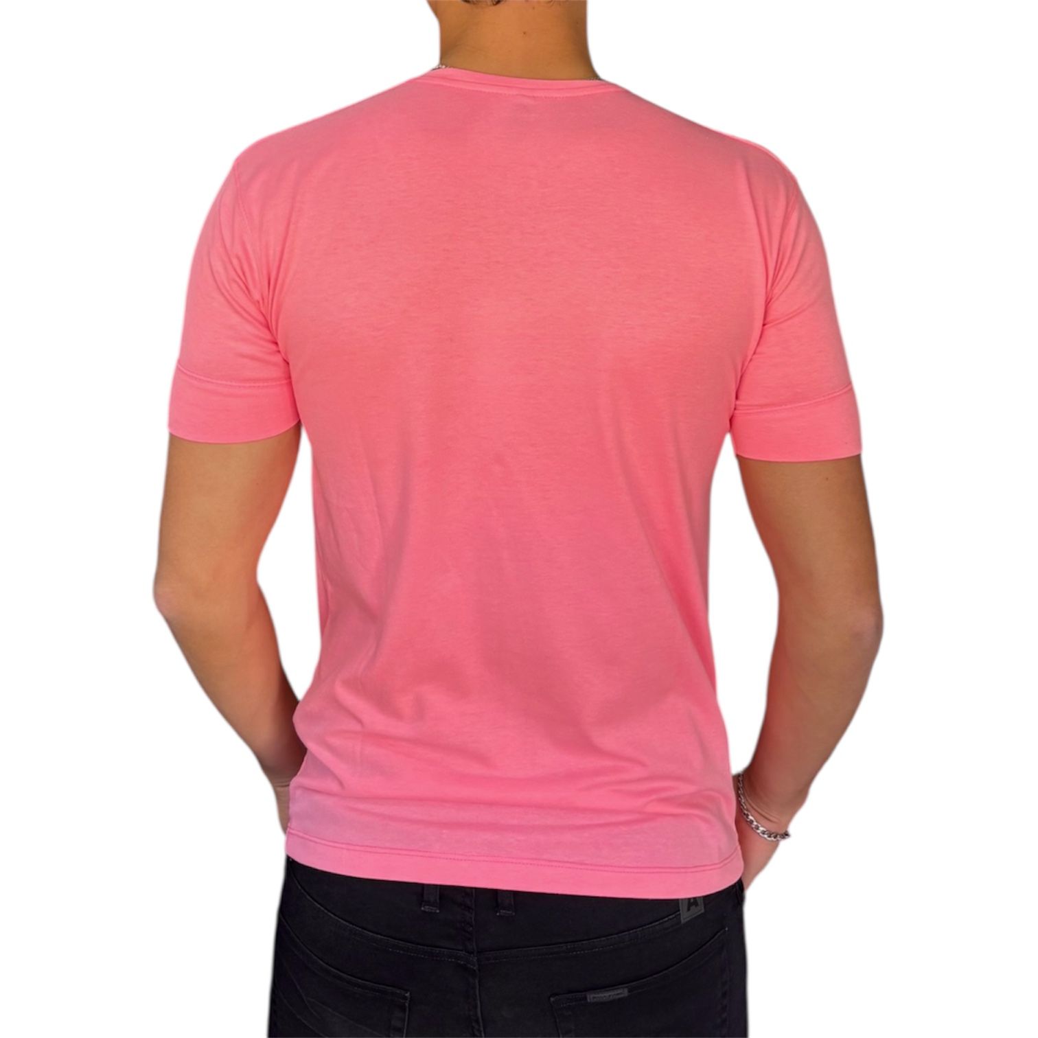 Remera elastizada rosa fluor con ajustes en las mangas y muy buena calidad.