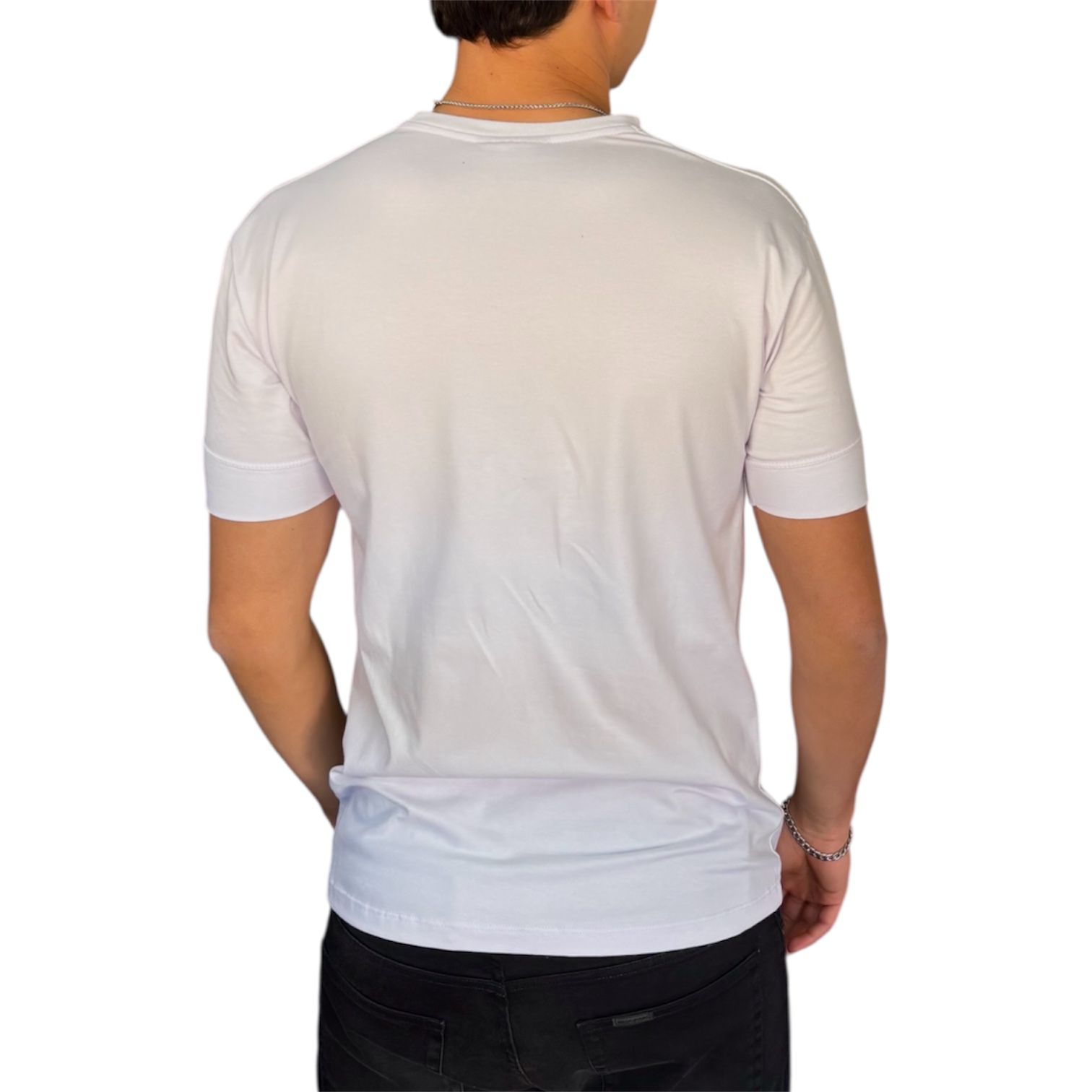 Remera blanca elastizada con ajuste en las mangas y muy buena calidad.
