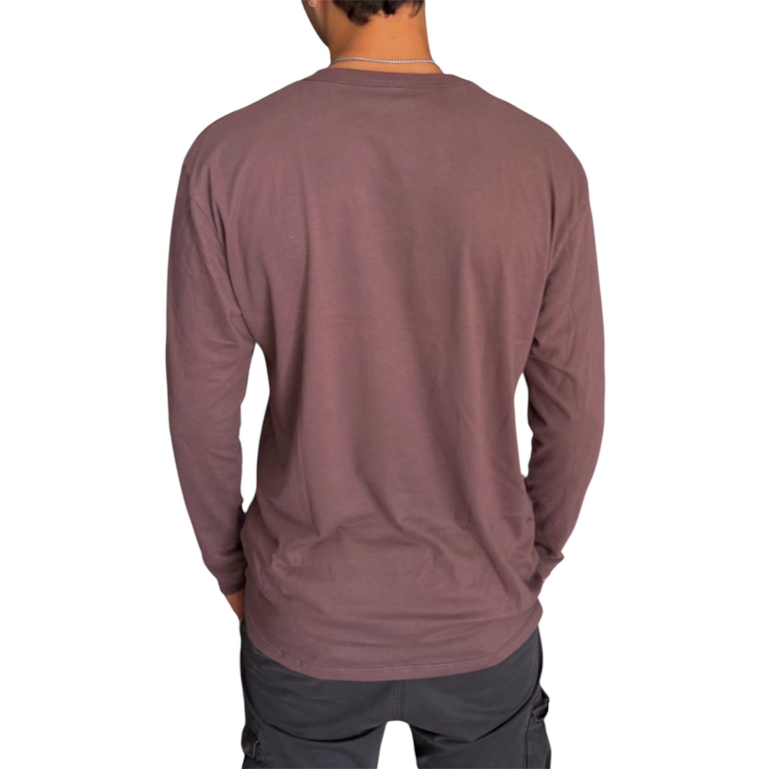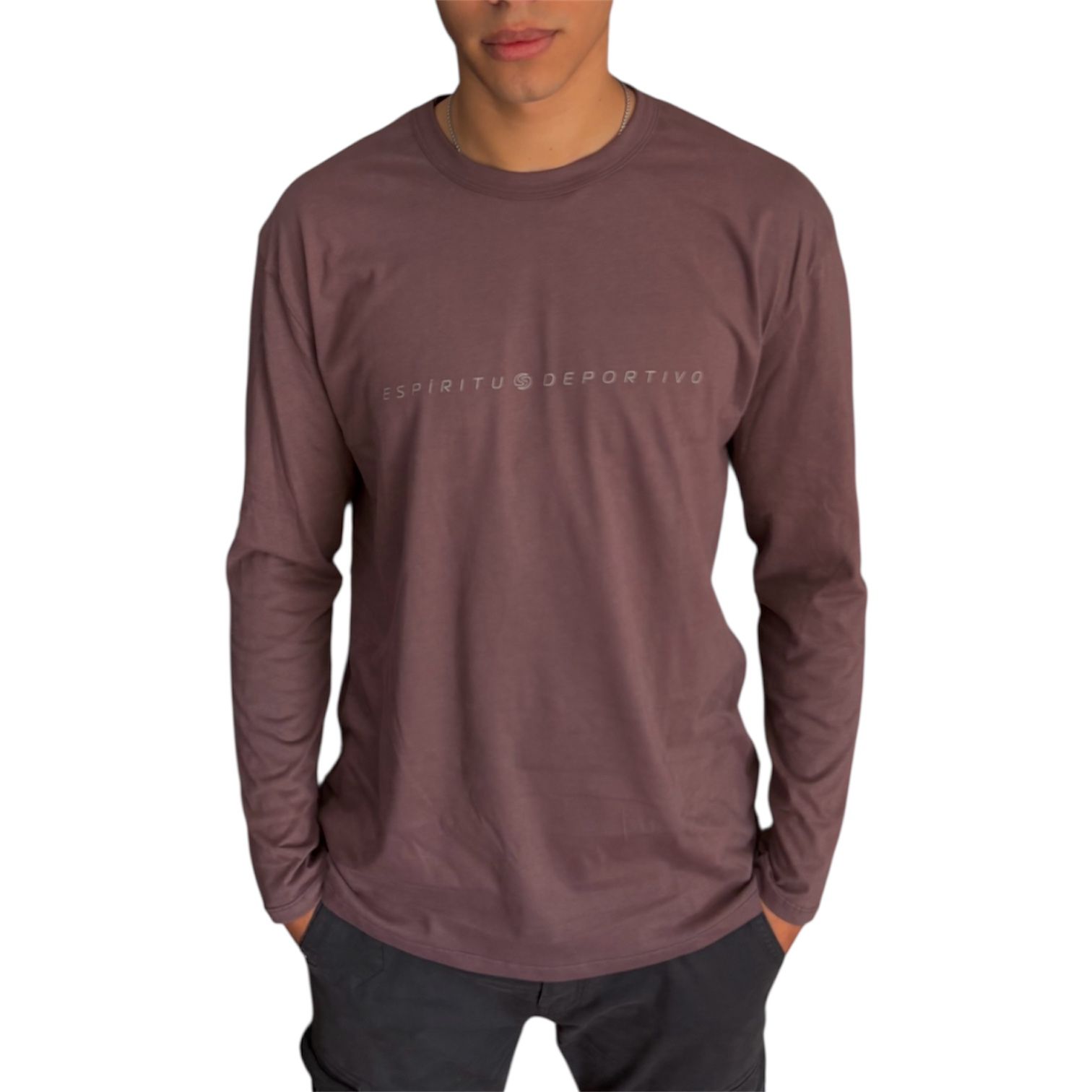 Remera de jersey borravino mangas largas con estampa por delante.